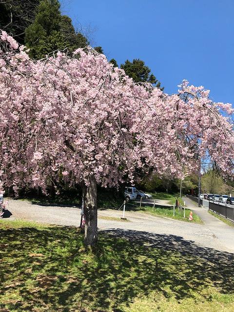 中尊寺付近の渋滞は60分くらいでした。入口にある桜が皆さんを出迎えていました。